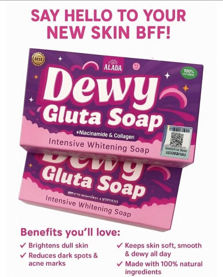 Alada Dewy Gluta Soap combines the brightening power of glutathione with niacinamide and collagen to promote radiant, youthful skin. This 70g soap gently cleanses while supporting skin’s natural glow, improving texture and enhancing firmness.