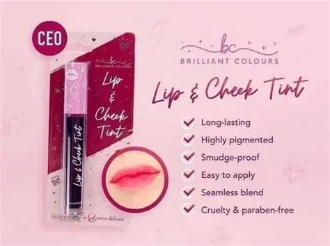 Brilliant Lip & Cheek Tint is a versatile, long-lasting two-in-one product designed to provide vibrant color and hydration for both lips and cheeks, available in shades suited for various skin tones.