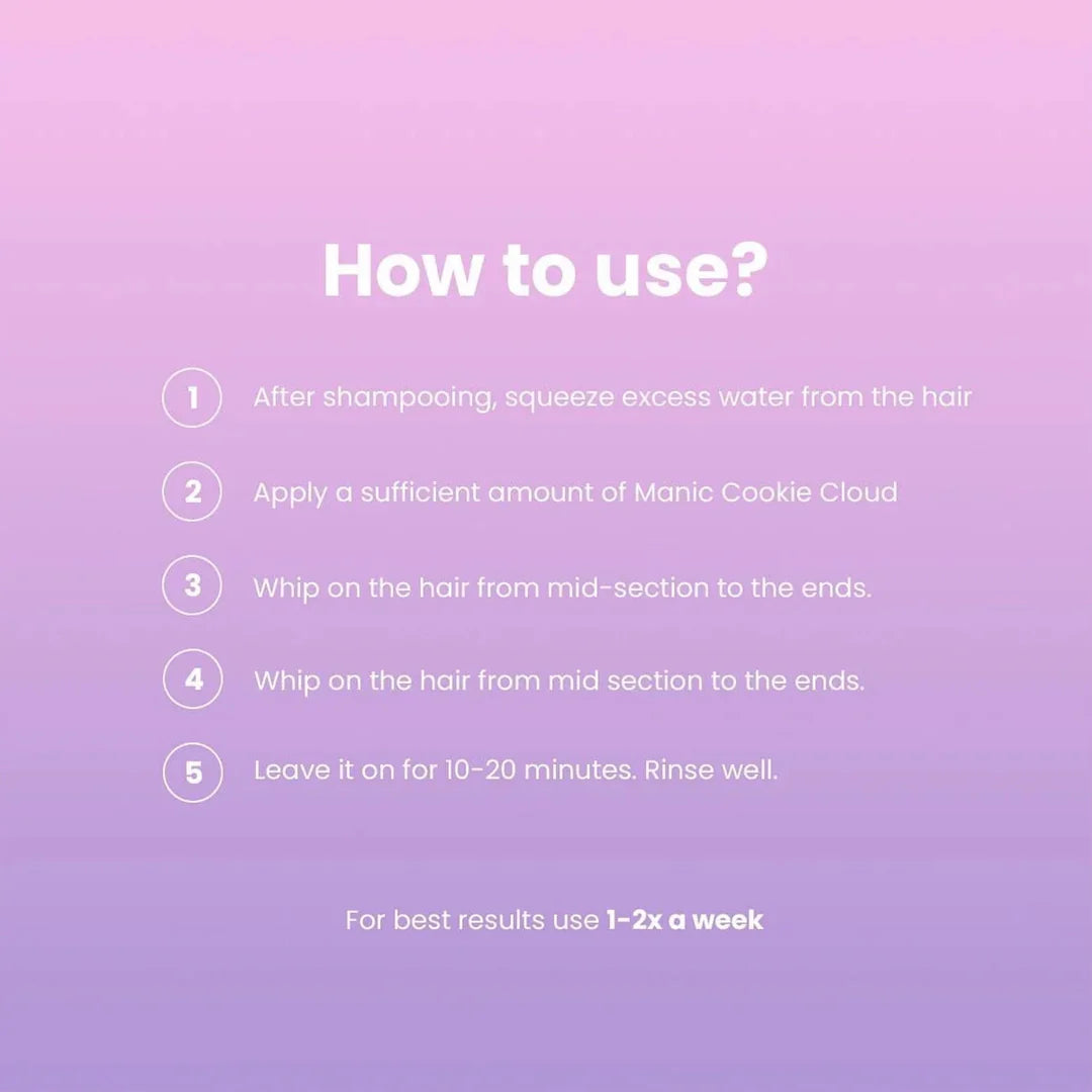 The Manic Beauty Cookie Cloud Hair Mask is designed to boost hair volume, strengthen strands, reduce hair loss, and enhance softness and shine, making your hair feel cloud-like.