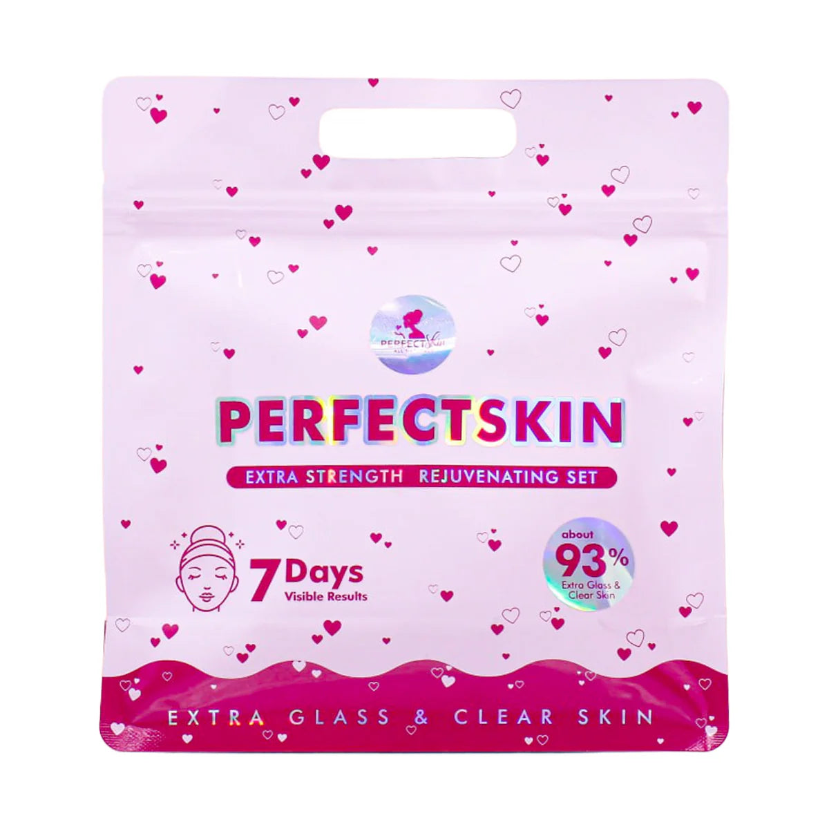 The Perfect Skin Rejuvenating Set is a daily skincare regimen designed to brighten, rejuvenate, and promote flawless skin, with options available for both regular and extra strength formulations tailored to various skin concerns.