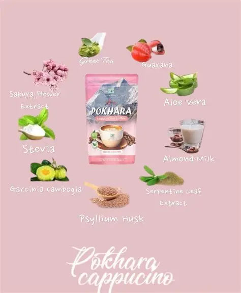 Namiroseus Pokhara Cappuccino Coffee is a herbal-infused coffee blend designed to provide a rich cappuccino flavor while supporting digestion, energy, and wellness goals, with additional slimming and fiber benefits.