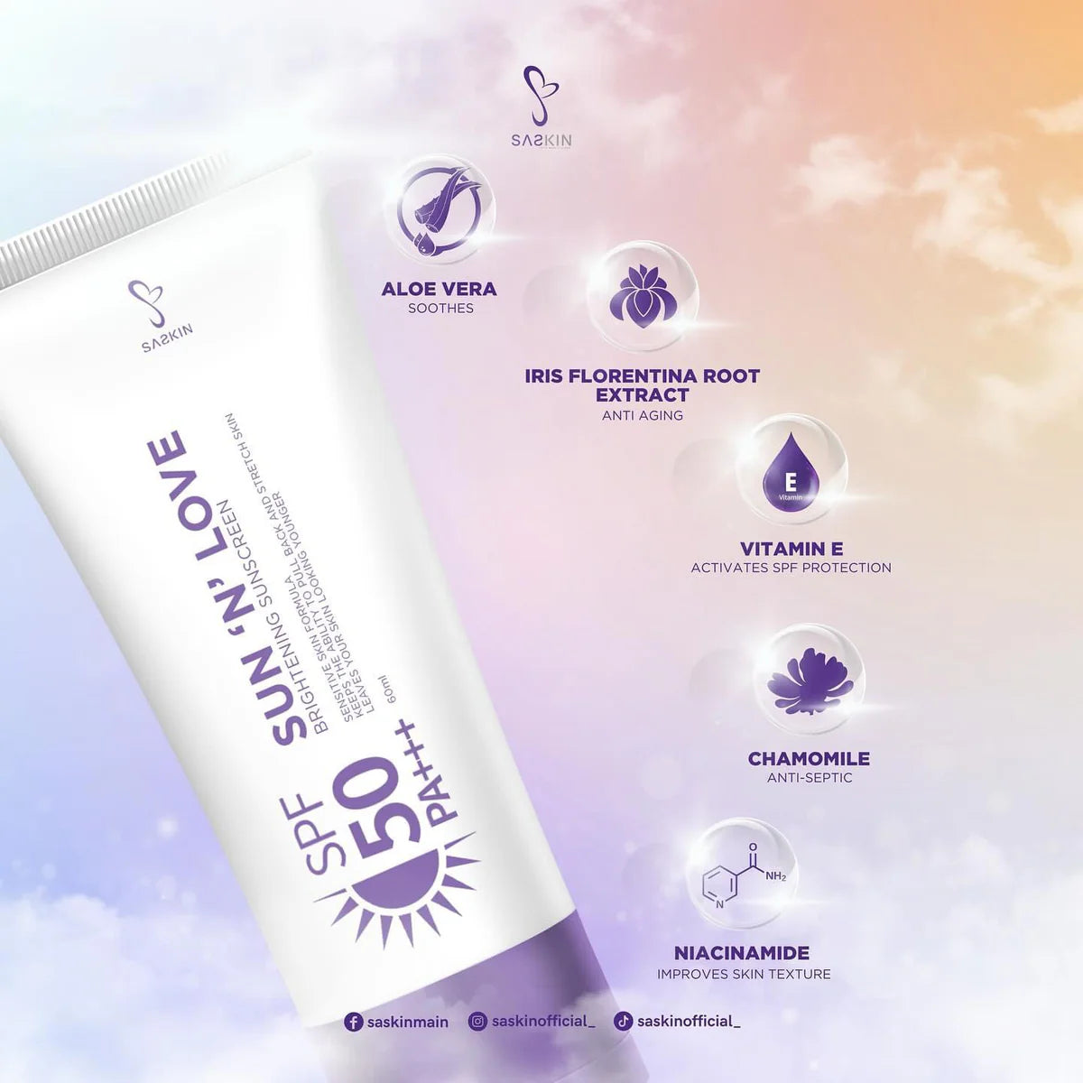 SASKIN Sun 'N' Love Brightening Sunscreen SPF 50 PA+++ 60ml