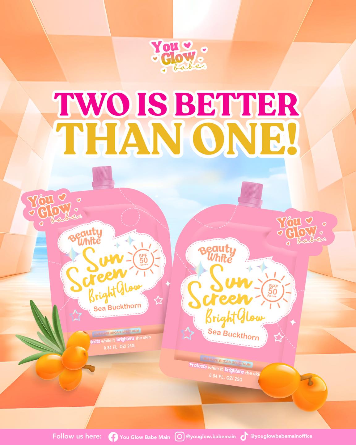 You Glow Babe Beauty White Sunscreen Bright Glow SPF 50 PA+++ TWIN Pack